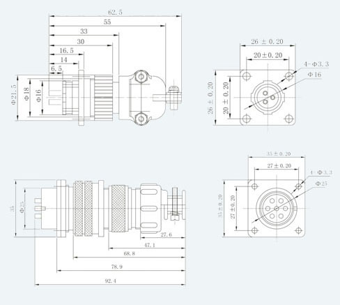 CP型連接器有外殼配合直徑為16、25(mm)兩種規(guī)格。每種各有幾種接觸對(duì)可選。
