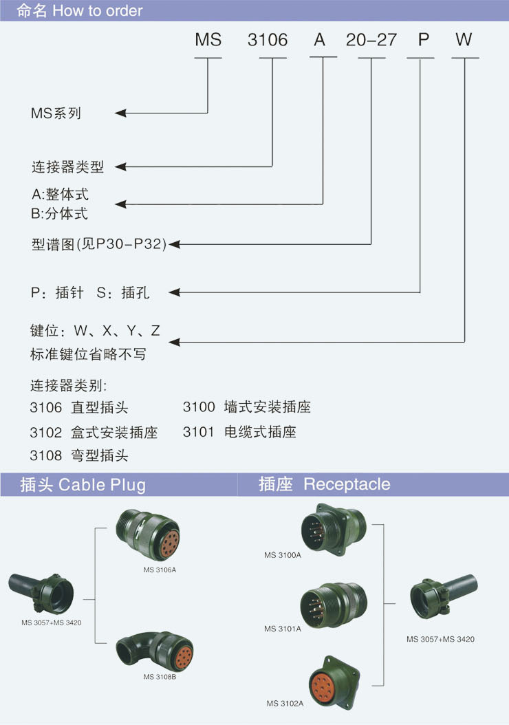MS系列連接器是參照美國MIL-C-5015G標(biāo)準研制生產(chǎn),可靠性好,互換性能強,通用國外同類產(chǎn)品。該系列圓形連接器特別設(shè)計用于軍事用途,廣泛應(yīng)用于工業(yè)行業(yè),大量的規(guī)格使產(chǎn)品滿足不同客戶的需求。MS 系列連接器是各種不同應(yīng)用領(lǐng)域的最好的解決方案。