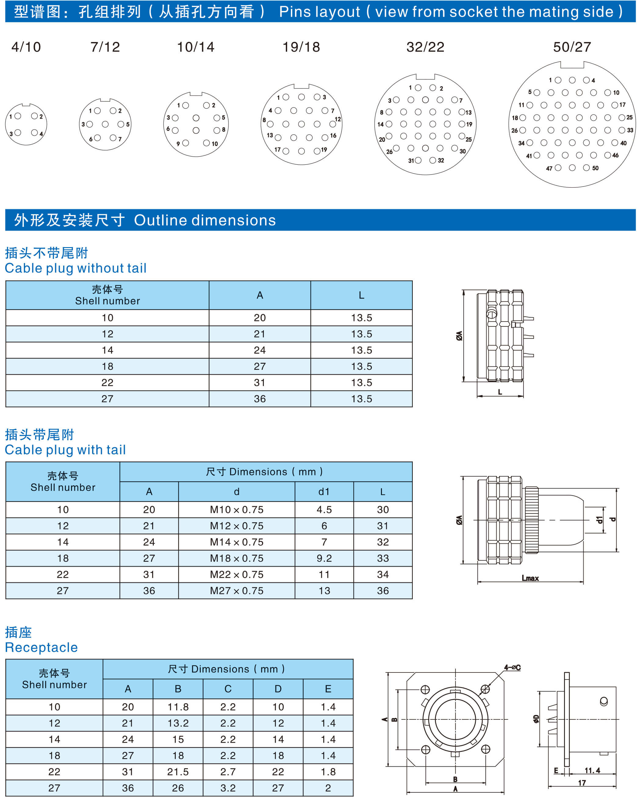 | 殼體號(hào) | 接觸件數(shù)量 | 單接觸件工作電流(A) | 電流總和(A) |