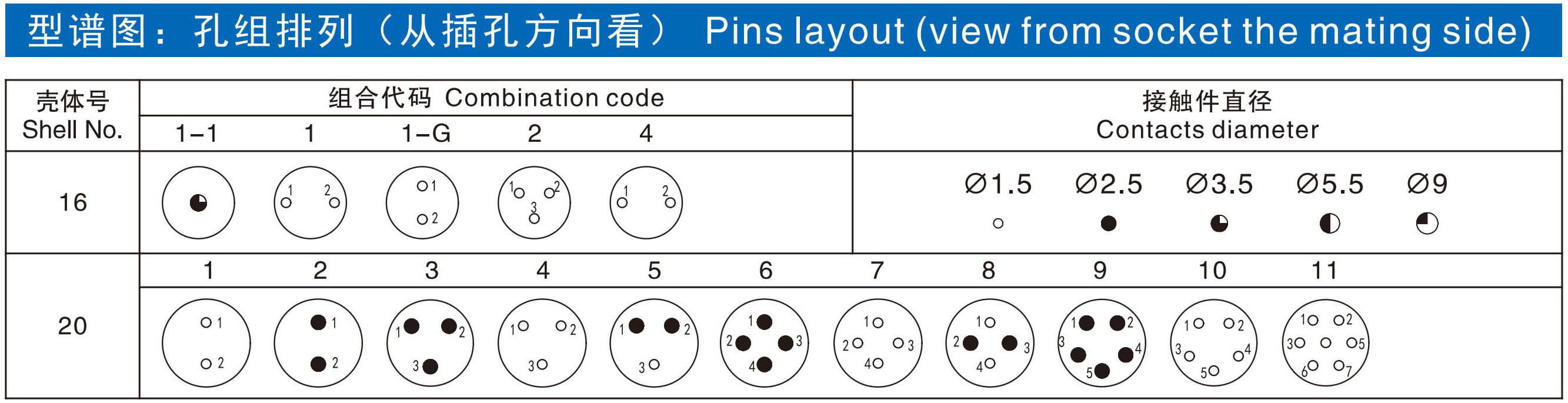 | 接觸件直徑 | ?1.5 | ?2.5 | ?3.5 | ?5.5 | ?9 |