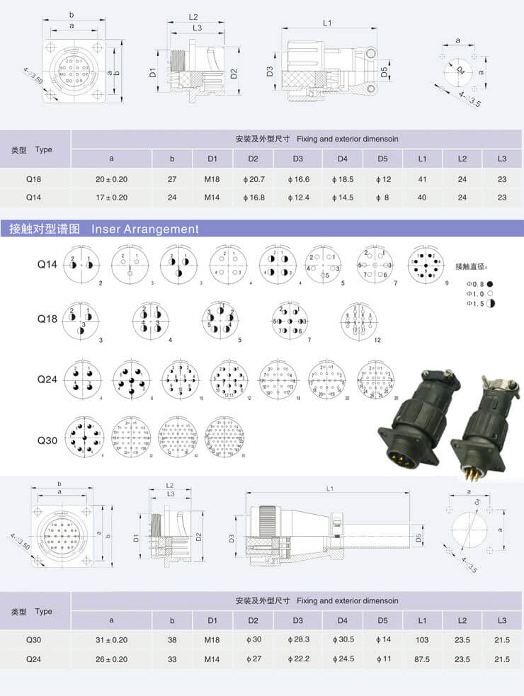 Q系列圓形電連接器體積小,重量輕,卡口快速連接,操作使用簡(jiǎn)單 方便,插針、插孔引線采用焊接式。產(chǎn)品結(jié)構(gòu)先進(jìn),電連接性能優(yōu)良, 價(jià)格低廉,性價(jià)比高,被廣泛使用于各種電子儀器、電氣設(shè)備間的電連 接中。產(chǎn)品按電子工業(yè)部標(biāo)準(zhǔn)SJIO497制造。產(chǎn)品針、孔可以根據(jù)你的 要求互換。