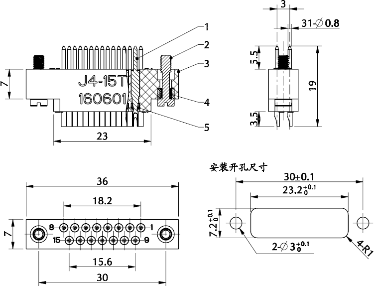 J4 series rectangular printed board electrical connector is manufactured according to GJB1438A (MIL-C-55302) standard, which has good reliability, strong interchangeable performance, small volume and light weight. The socket is adapted a hyperbolic spring , J4D is a side slotted socket. 2.6mm× 3mm Non-standard gap. PCB immersion welding, welding and other terminating forms. This series of rectangular connectors are widely used in aerospace, aviation, electronics, weapons, ships, communications, computers and other industries of the equipment cabin electrical signal connection.